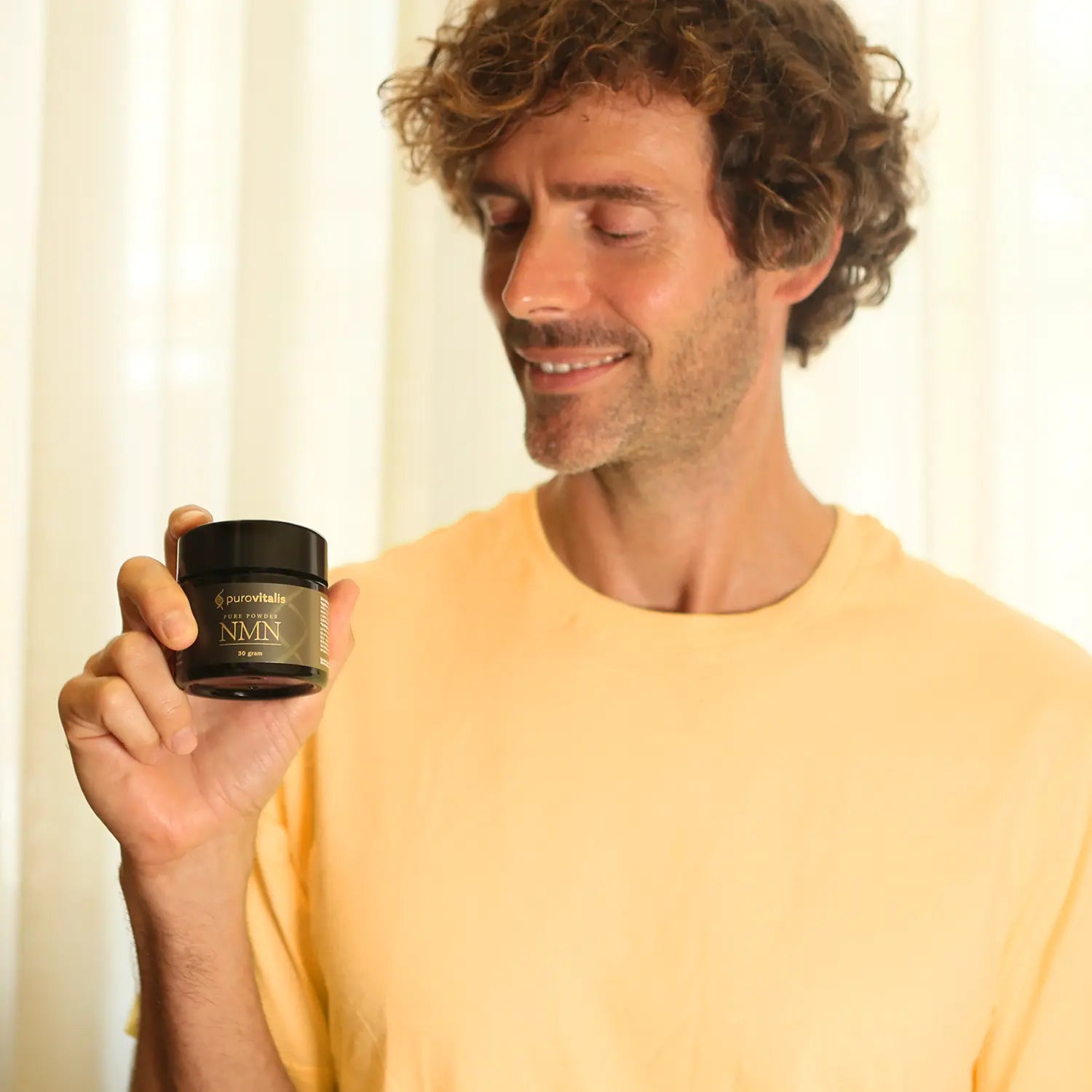 Purovitalis NMN powder is made of 99+ % β-Nicotinamide Mononucleotide, making it one of the highest quality and purest on the market. With each production we make sure it is thoroughly third-party tested on purity, heavy metals and pesticides. Our NMN powder comes in serving sizes of 30, 60 and 120 servings (when taking 500mg per serving) and comes with a handy scope to measure your desired dose. Buy NMN Powder Today!